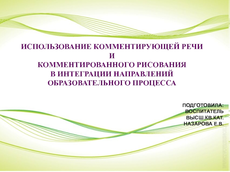 ИСПОЛЬЗОВАНИЕ КОММЕНТИРУЮЩЕЙ РЕЧИ И КОММЕНТИРОВАННОГО РИСОВАНИЯ В ИНТЕГРАЦИИ НАПРАВЛЕНИЙ ОБРАЗОВАТЕЛЬНОГО ПРОЦЕССАПОДГОТОВИЛА:ВОСПИТАТЕЛЬВЫСШ.КВ.КАТ.НАЗАРОВА Е.В.