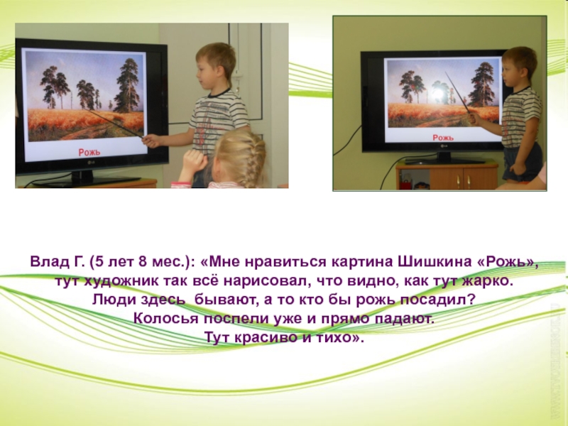 Слайд 11Влад Г. (5 лет 8 мес.): «Мне нравиться картина Шишкина