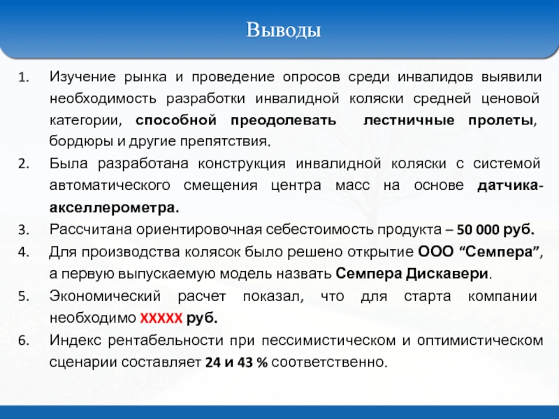 Рассчитать стоимость разработанной инвалидной коляски, инвестиционную