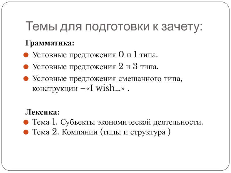 зачёте:Лексико-грамматический тест-20баллов.