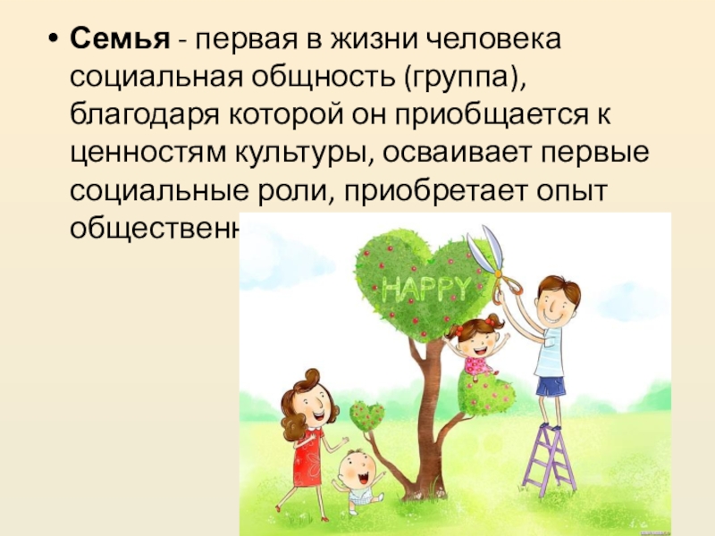 Слайд 3Семья - первая в жизни человека социальная общность (группа), благодаря