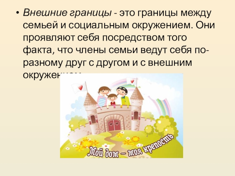 Слайд 21Внешние границы - это границы между семьей и социальным окружением.
