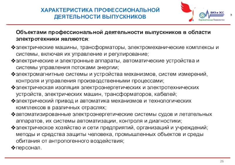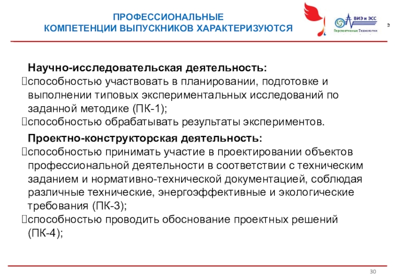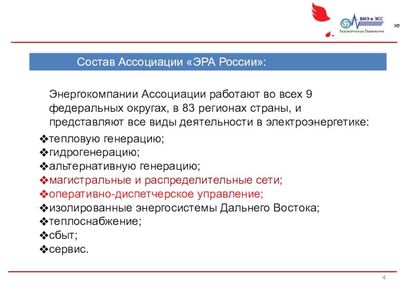 — научно-исследовательская, проектная и экспертная деятельность (Российский национальный комитет Международного Совета по большим электрическим системам высокого напряжения - СИГРЭ, АО «Техническая инспекция ЕЭС»);