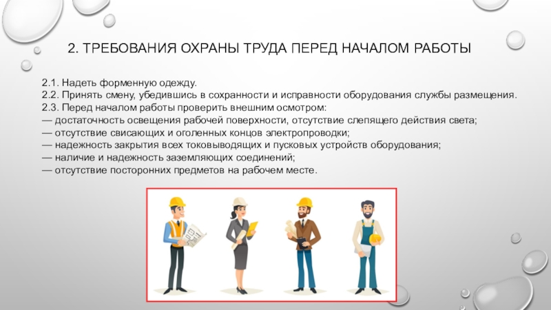 Слайд 62. ТРЕБОВАНИЯ ОХРАНЫ ТРУДА ПЕРЕД НАЧАЛОМ РАБОТЫ