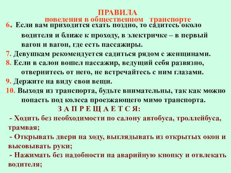 9. Если вас начинают преследовать, идите (бегите) туда, где много людей, больше света (ночью) и т.д. Призыв о помощи – это не свидетельство трусости, а необходимое средство самозащиты, иногда – спасение.