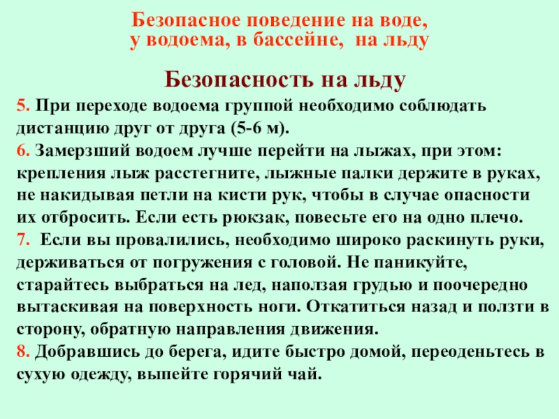 5. При переходе водоема группой необходимо соблюдать дистанцию друг