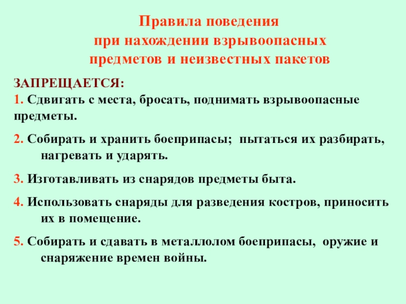 Правила поведения при нахождении взрывоопасных