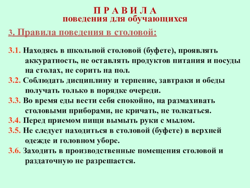 6. Правила поведения в столовой.