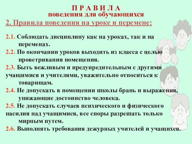 2. Правила поведения для учащихся, воспитанников.