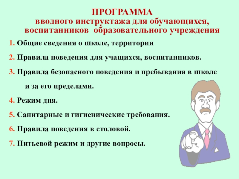 вводного инструктажа для обучающихся,