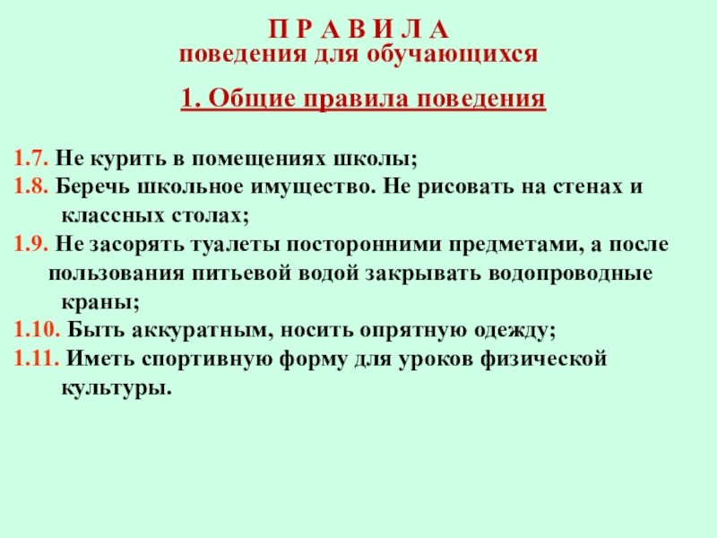 1.7. Не курить в помещениях школы;