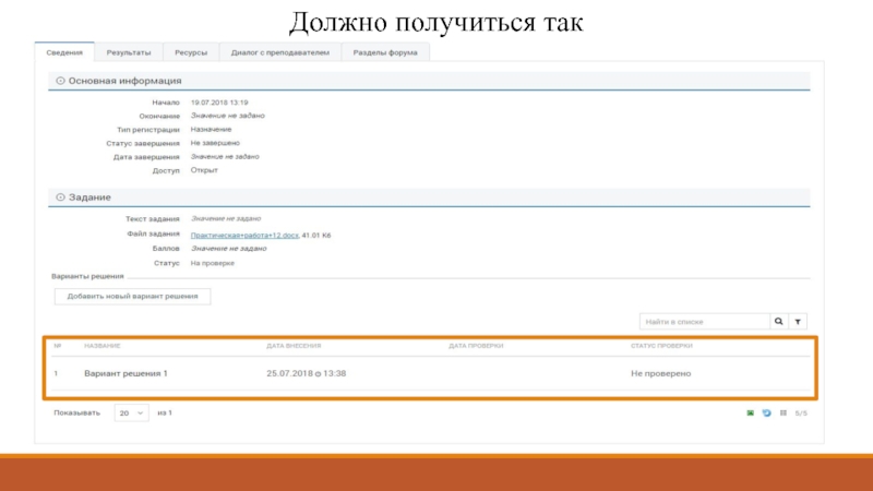 Слайд 23Вернитесь "Назад", нажмите «Добавить новый вариант решения», прикрепите итоговый файл