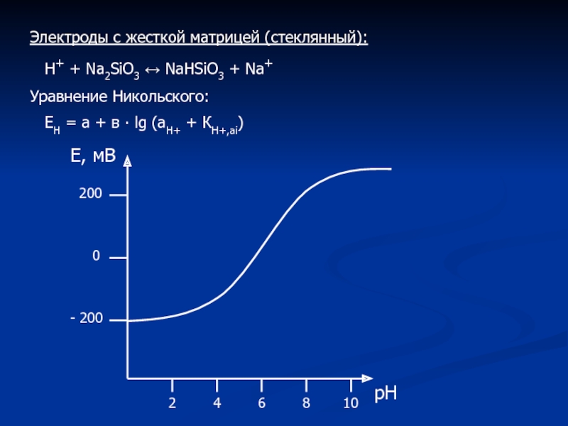 для стеклянного электрода: Е = 0.059 ∙ lg aН+