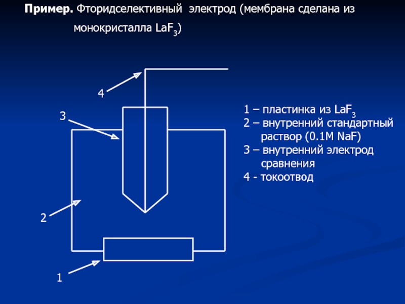 Слайд 7Пример. Фторидселективный электрод (мембрана сделана из