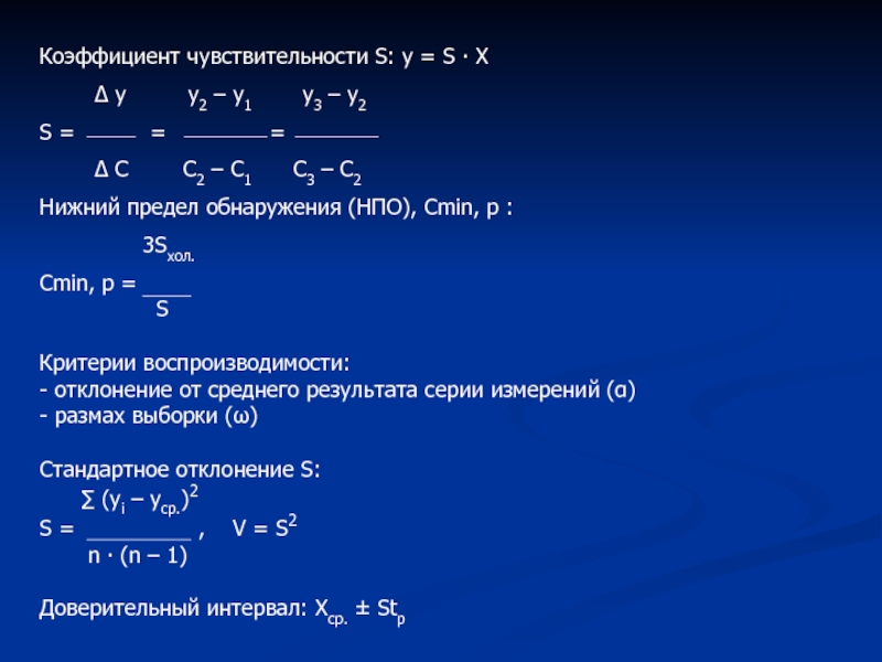 Слайд 2Коэффициент чувствительности S: у = S ∙ X