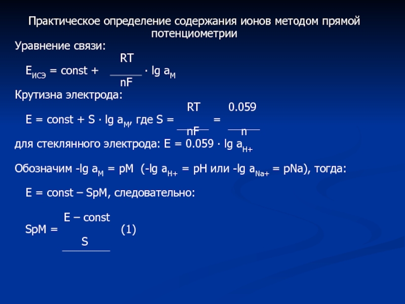 Слайд 13Практическое определение содержания ионов методом прямой
