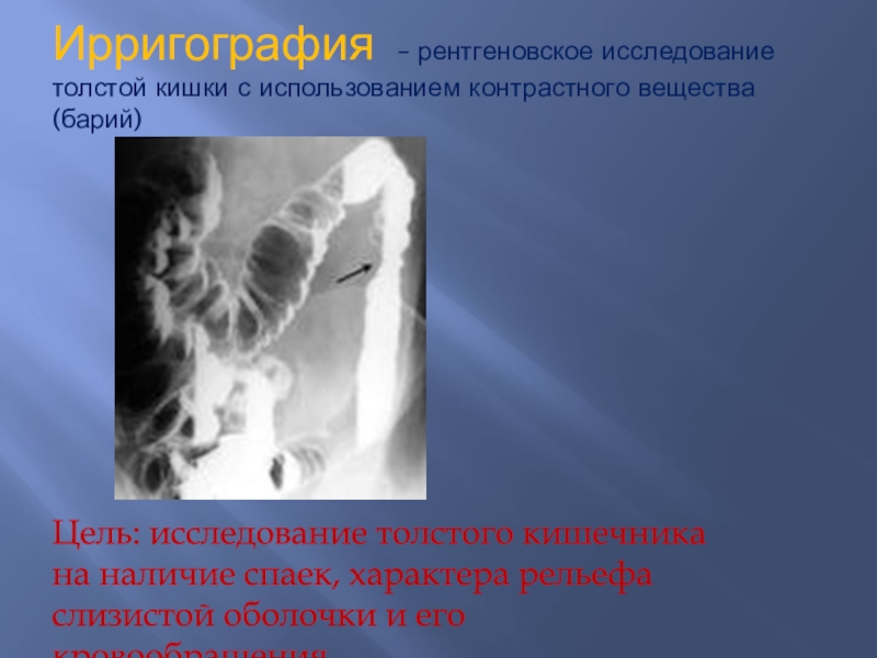 Слайд 32Ирригография – рентгеновское исследование толстой кишки с использованием контрастного
