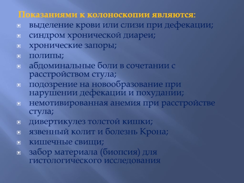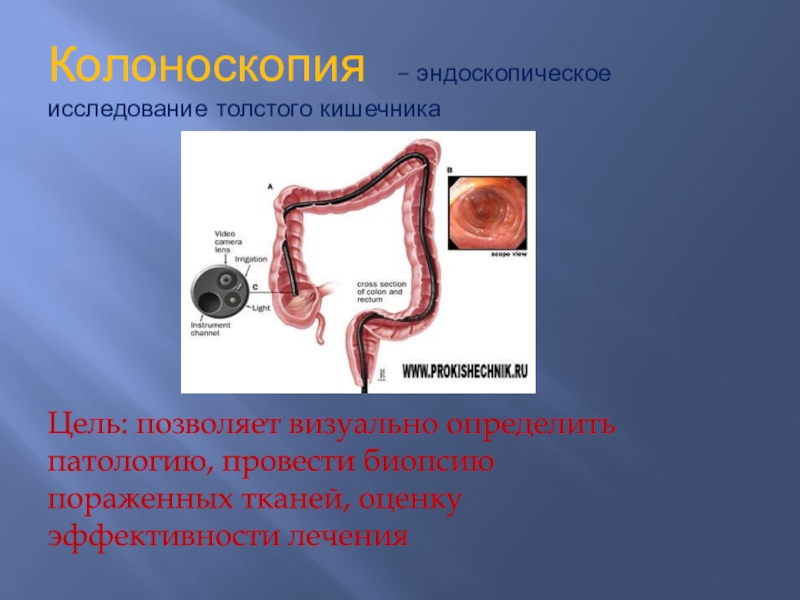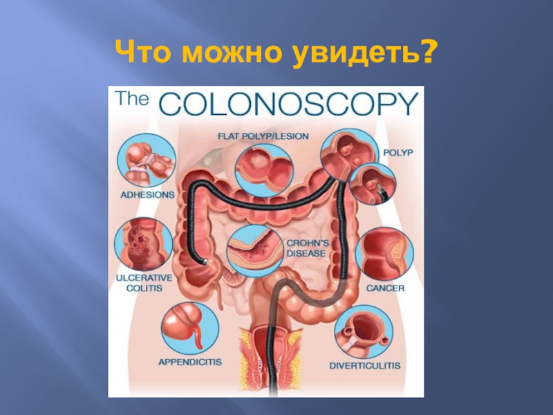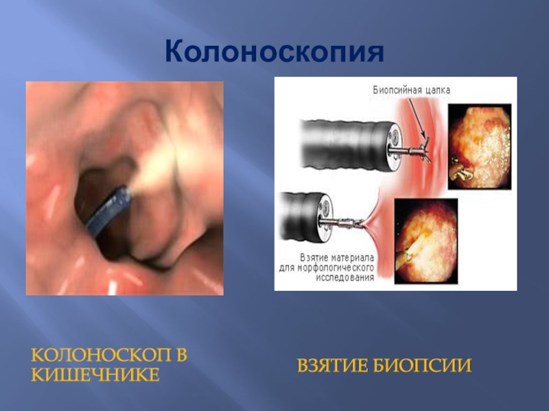 Слайд 12Колоноскопия – эндоскопическое исследование толстого кишечника