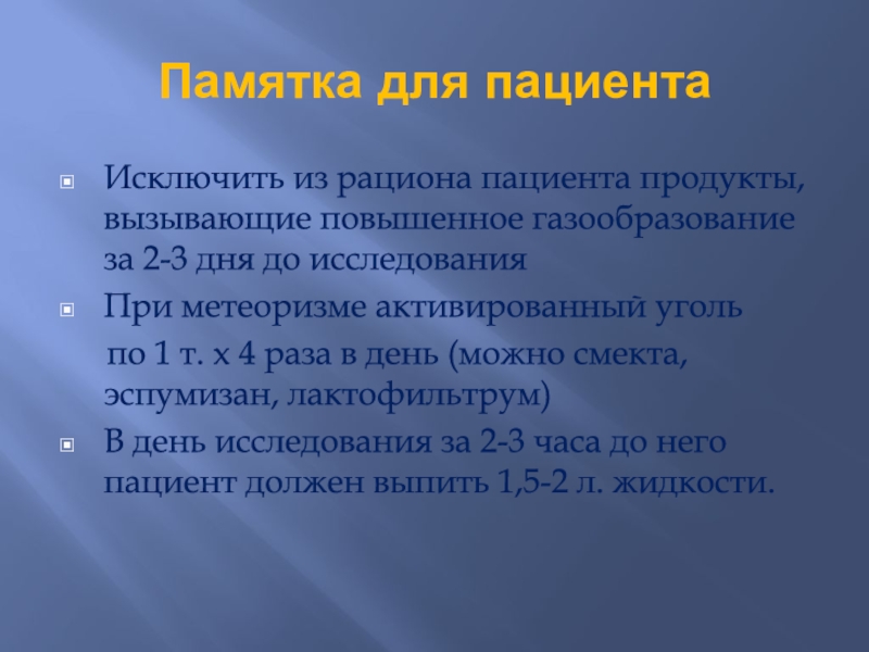 часов) – легкий ужин. До исследования, по возможности, воздержитесь от