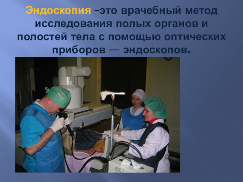 Слайд 4Эндоскопия –это врачебный метод исследования полых органов и полостей тела