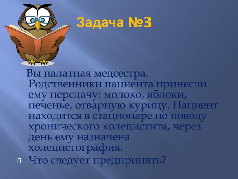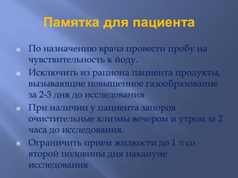 к исследованию медсестра предложила пациенту соблюдать в течении 2-3 дней
