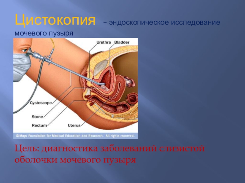 Слайд 25Цистокопия – эндоскопическое исследование мочевого пузыря