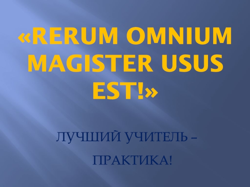 «RERUM OMNIUM MAGISTER USUS EST!»