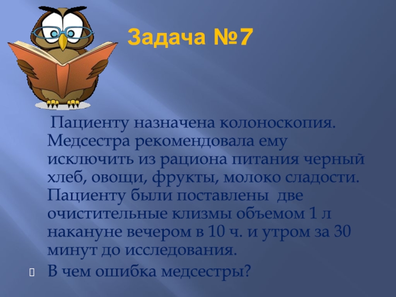 Пациенту назначена колоноскопия. Медсестра рекомендовала ему
