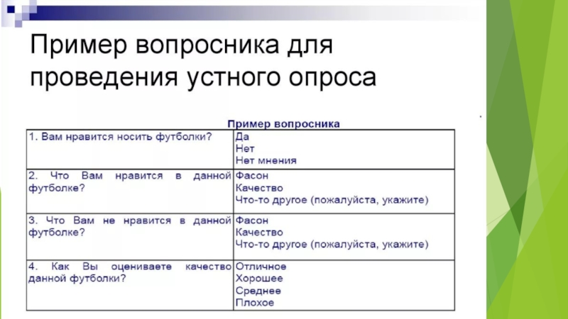 Вопросник- опросный лист с напечатанным на нем текстом вопросов, который