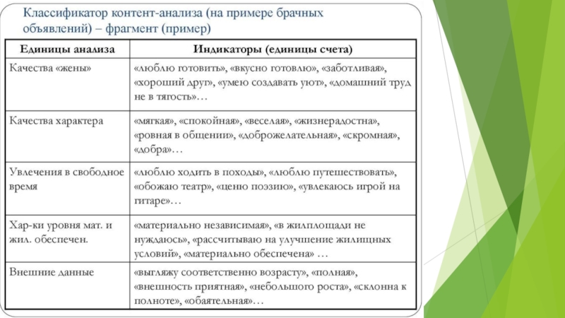 классификатор контент-анализа (общая таблица, в которую сведены все