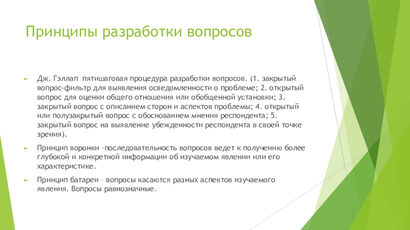 Дж. Гэллап пятишаговая процедура разработки вопросов. (1. закрытый