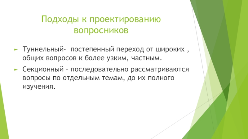 Принцип воронки –последовательность вопросов ведет к получению более глубокой и конкретной информации об изучаемом явлении или его характеристике.