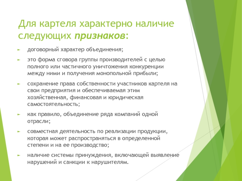 Слайд 7Для картеля характерно наличие следующих признаков: