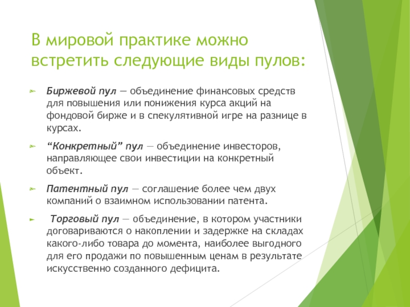 Слайд 10В мировой практике можно встретить следующие виды пулов: