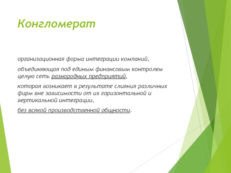 интеграция предприятий различных отраслей без наличия производственной общности;
