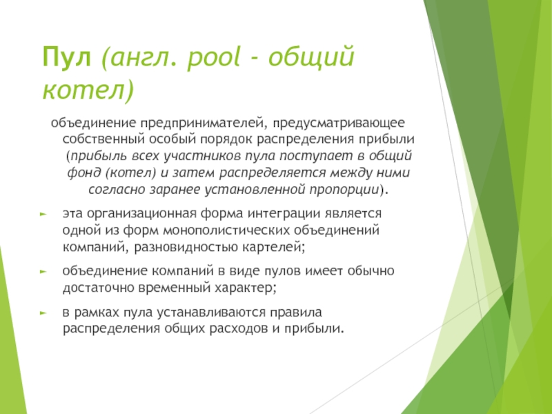 объединение компаний в виде пулов имеет обычно достаточно временный характер;