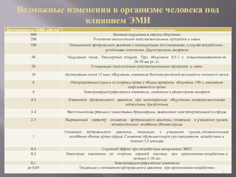 Слайд 3Возможные изменения в организме человека под влиянием ЭМИ