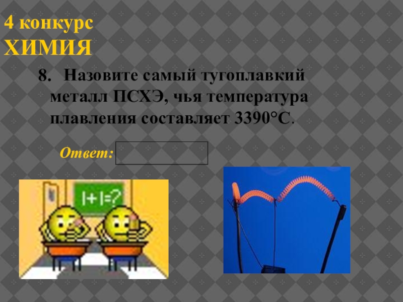 Назовите самый тугоплавкий металл ПСХЭ, чья температура