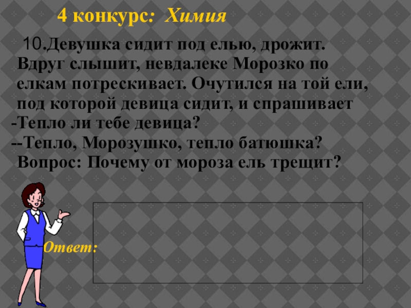 слышит, невдалеке Морозко по елкам потрескивает. Очутился на той ели,