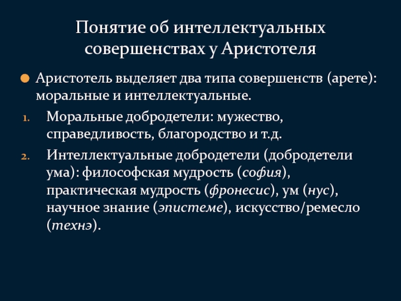 Понятие об интеллектуальных совершенствах у Аристотеля
