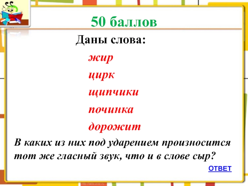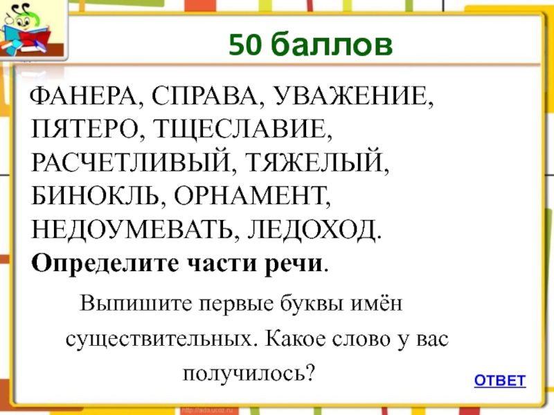 Слайд 41 50 баллов