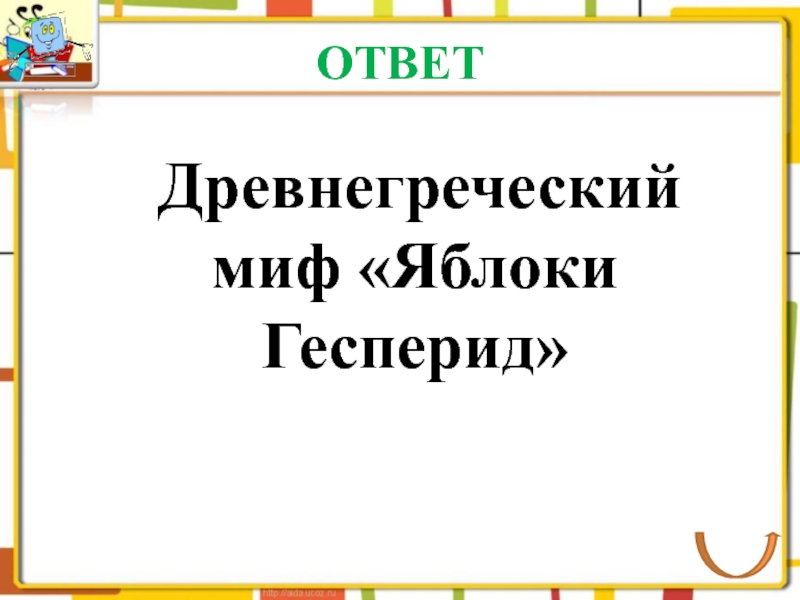 ОТВЕТ	Древнегреческий миф «Яблоки Гесперид»