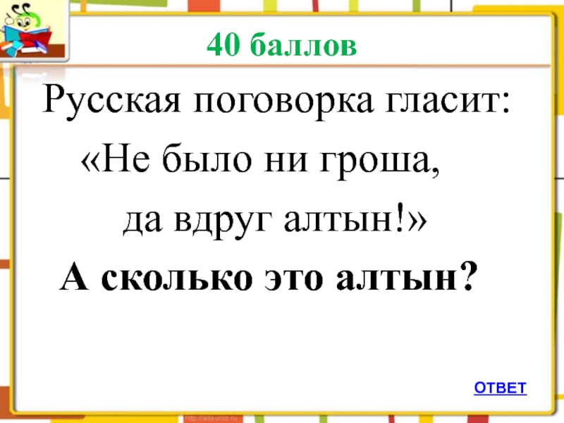 Слайд 9 40 баллов