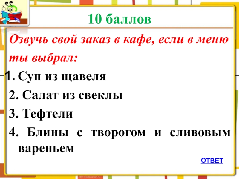 Слайд 4310 баллов