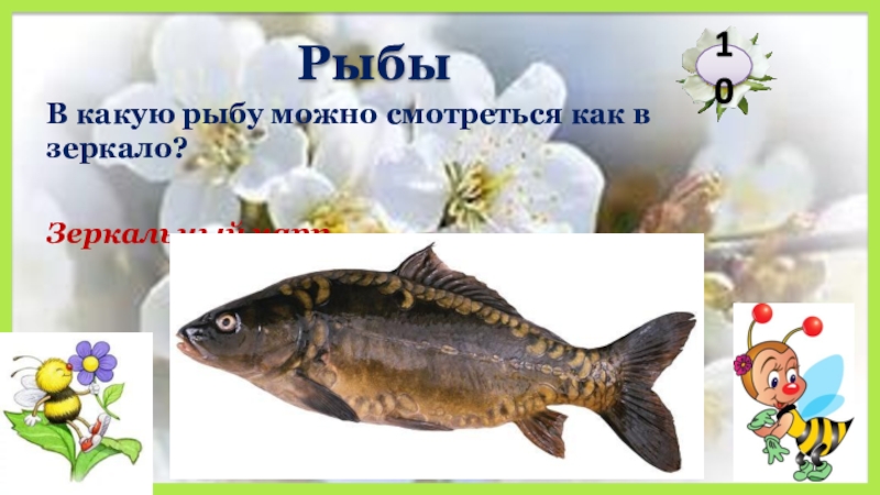Зеркальный карпВ какую рыбу можно смотреться как в зеркало? 10Рыбы