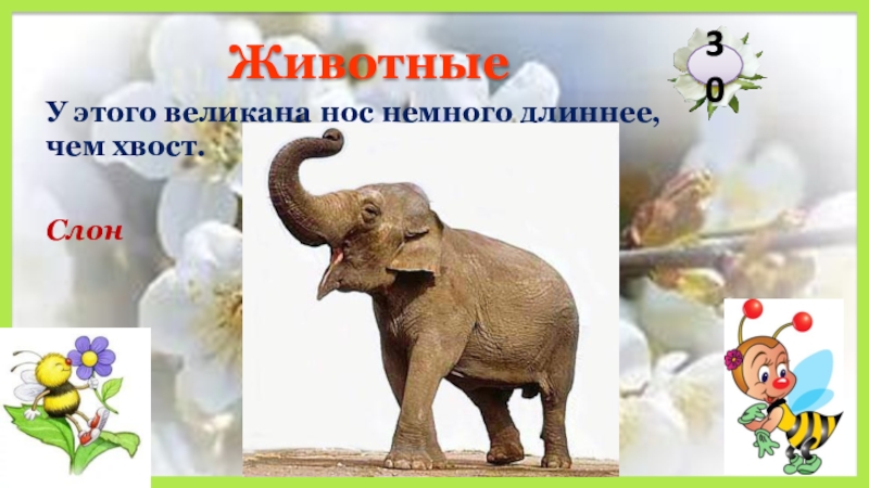 Слон У этого великана нос немного длиннее, чем хвост.30Животные
