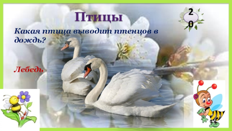 Лебедь 20ПтицыКакая птица выводит птенцов в дождь?