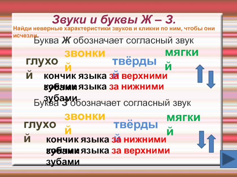 Найди неверные характеристики звуков и кликни по ним, чтобы они исчезли.