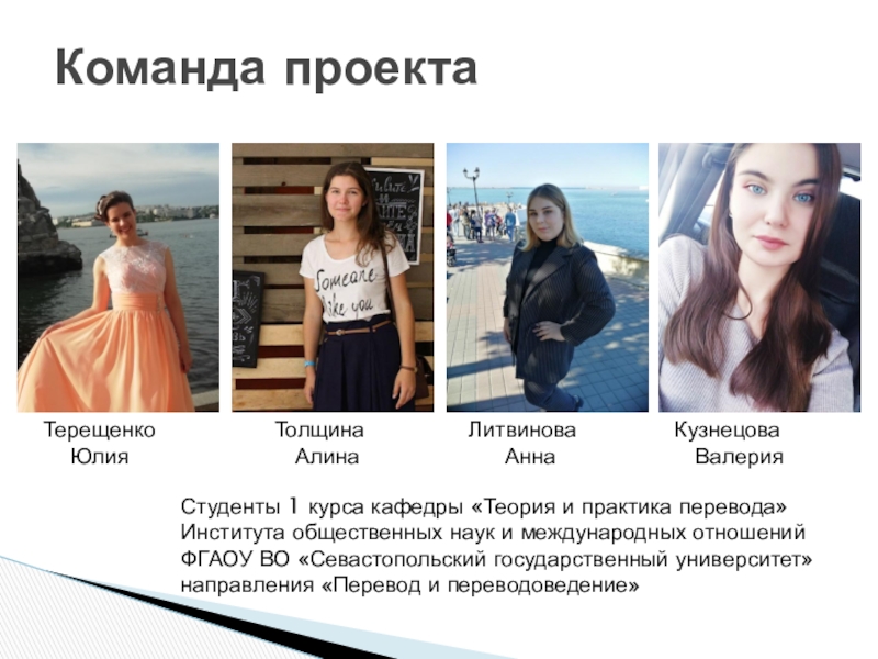 Студенты 1 курса кафедры «Теория и практика перевода» Института общественных наук и международных отношений ФГАОУ ВО «Севастопольский государственный университет» направления «Перевод и переводоведение»