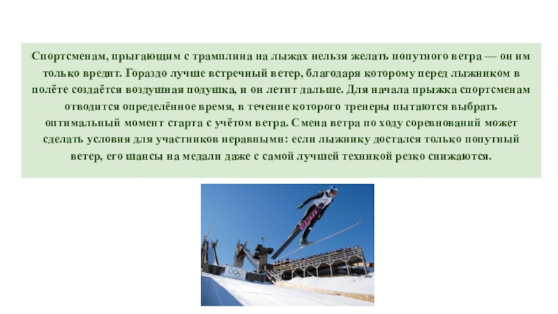 Спортсменам, прыгающим с трамплина на лыжах нельзя желать попутного ветра